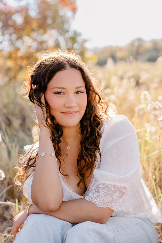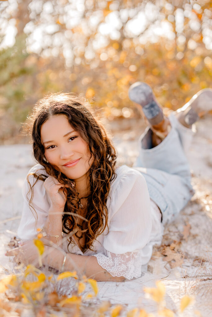 Many of my clients ask me, “When is the best time of year for senior pictures?”. Most of my seniors love late July, August, or early September. However, my personal favorite months are late September and October. The air is crisper, and the humidity and bugs have calmed down. Additionally, the chance of pop-up thunderstorms drops way down, and the light turns extra golden. This makes everything feel dreamy and effortless.